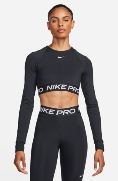 Mugavad, hingavad riided hoiavad keha kuivana ja lasevad vabalt liikuda, nii et saad keskenduda liikumisele, mitte varustusele. Pole saladus, et ilusad riided võivad anda lisamotivatsiooni trenni minekuks. Kui vajad lisatõuget, siis vali pikkade varrukatega Nike Pro treeningtopp, mis rõhutab sportlikku siluetti ja laseb nahal hingata, samal ajal kui lühike lõige jätab kõhu osa vabaks, andes enesekindla ja trendika välimuse. Mustad kõrge pihaga Nike Pro retuusid loovad tasakaalu ja pakuvad tuge intensiivsemate harjutuste ajal. Läikivad paneelid ja reljeefsed detailid lisavad visuaalset sügavust ja annavad kogu komplektile jõulise karakteri.