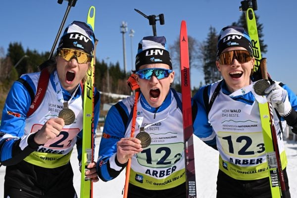 Eesti noormeeste koondis koosseisus Daniel Varikov, Kristen Baumann ja Frederik Välbe võitis 3 x 7,5 km teatesõidus pronksmedali. Varikov andis teatepulga üle kümnendalt kohalt, Baumann kergitas meeskonna viiendaks ning Välbe tegi viimases vahetuses suurepärase töö, tuues Eesti poodiumile.